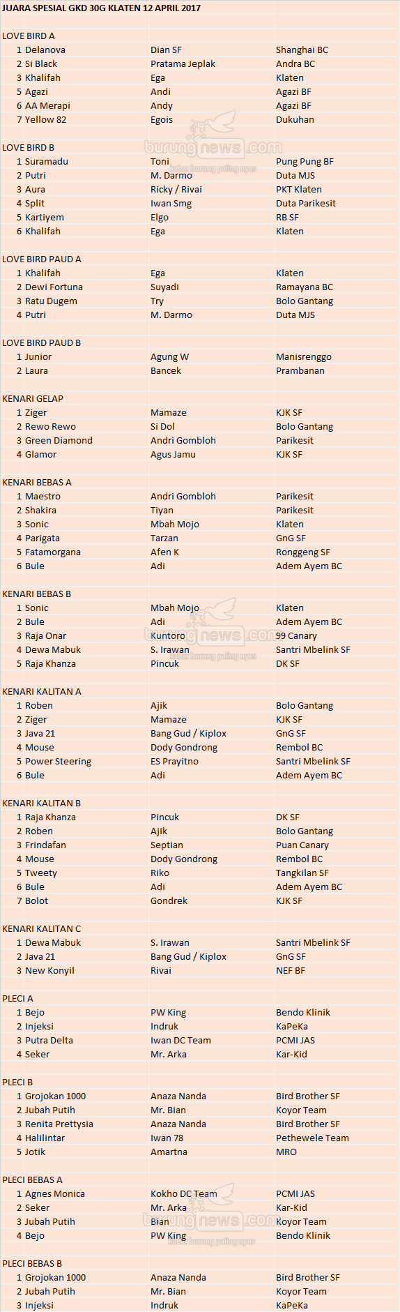 Hasil Lomba Burung