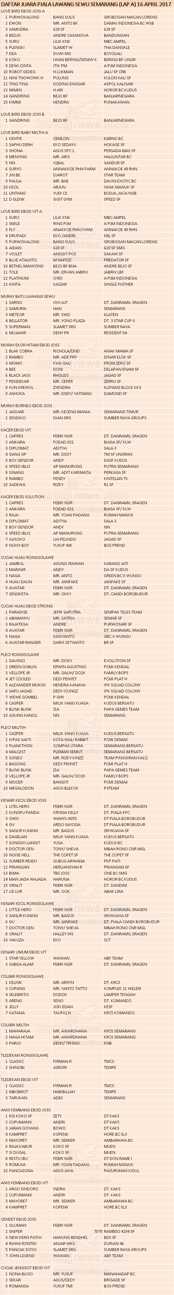 Hasil Lomba Burung