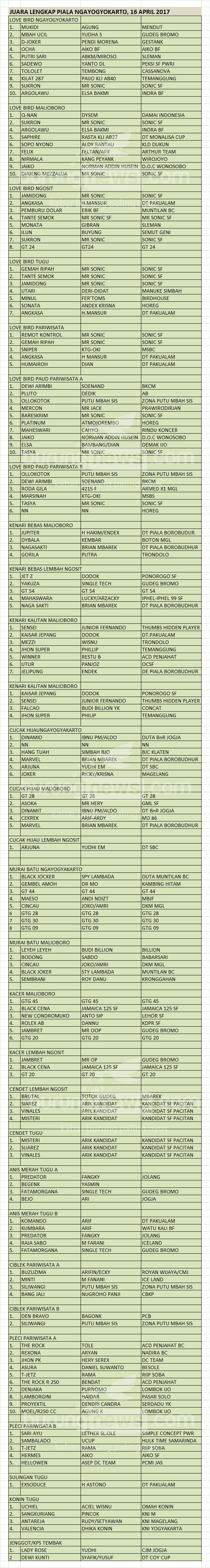 Hasil Lomba Burung
