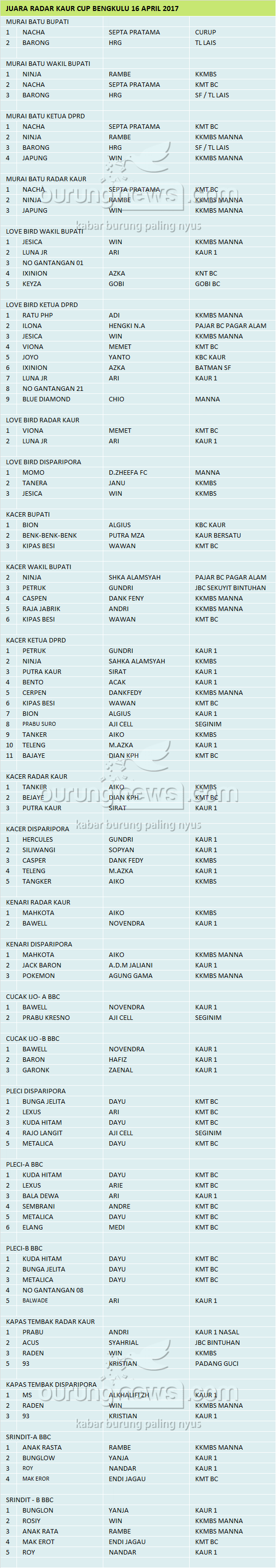 Hasil Lomba Burung