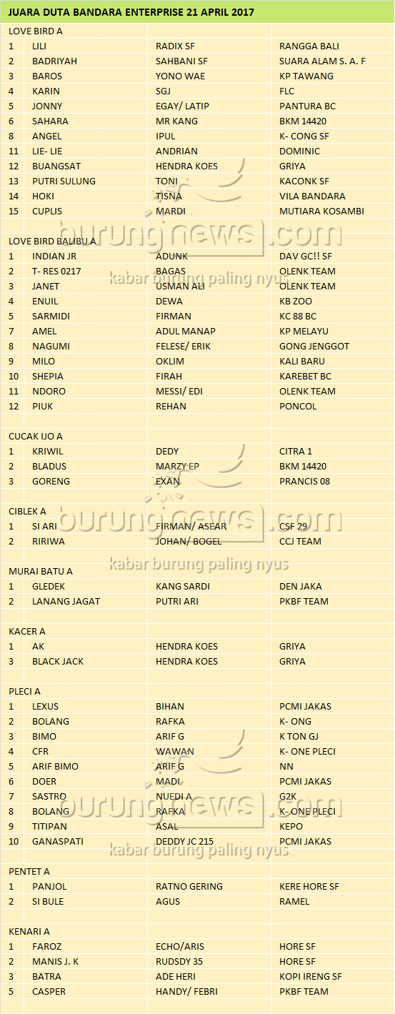Hasil Lomba Burung
