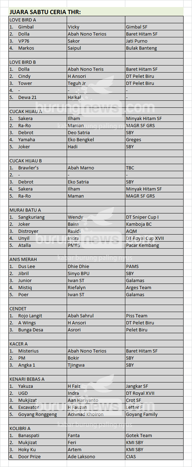 Hasil Lomba Burung