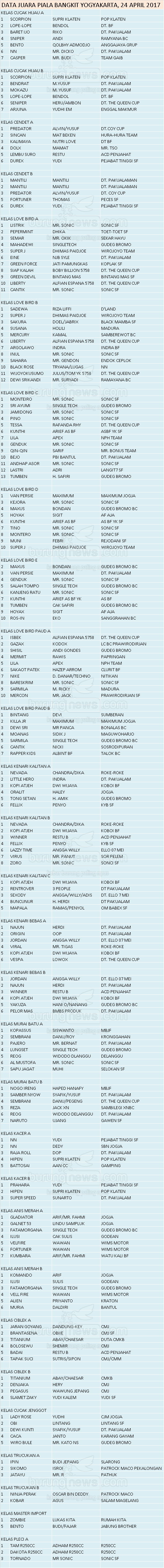 Hasil Lomba Burung