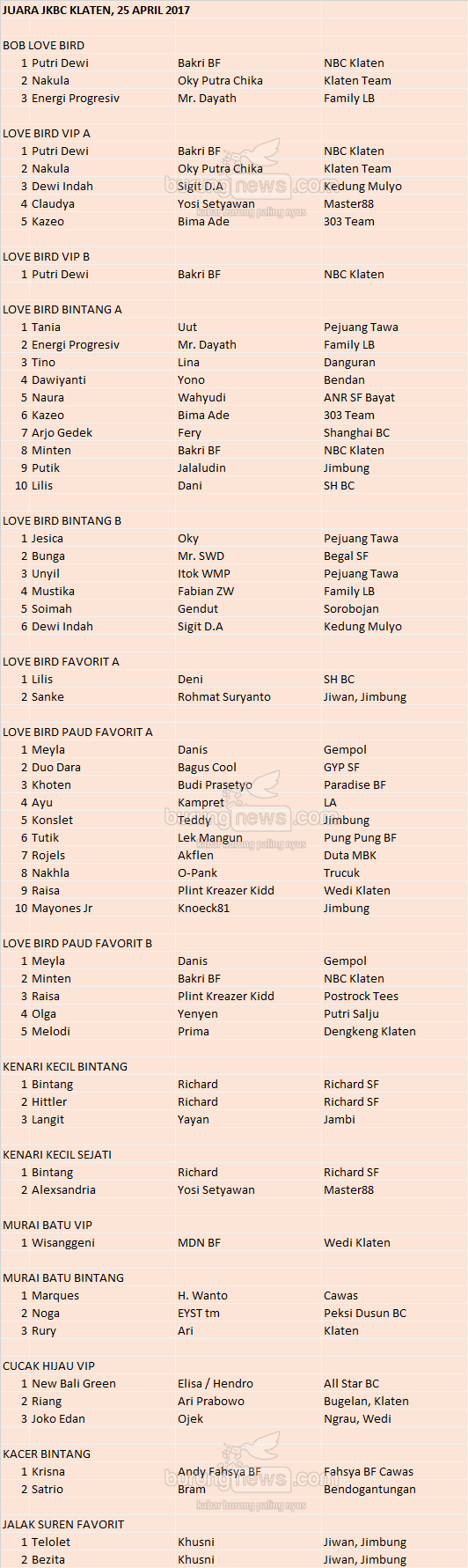 Hasil Lomba Burung