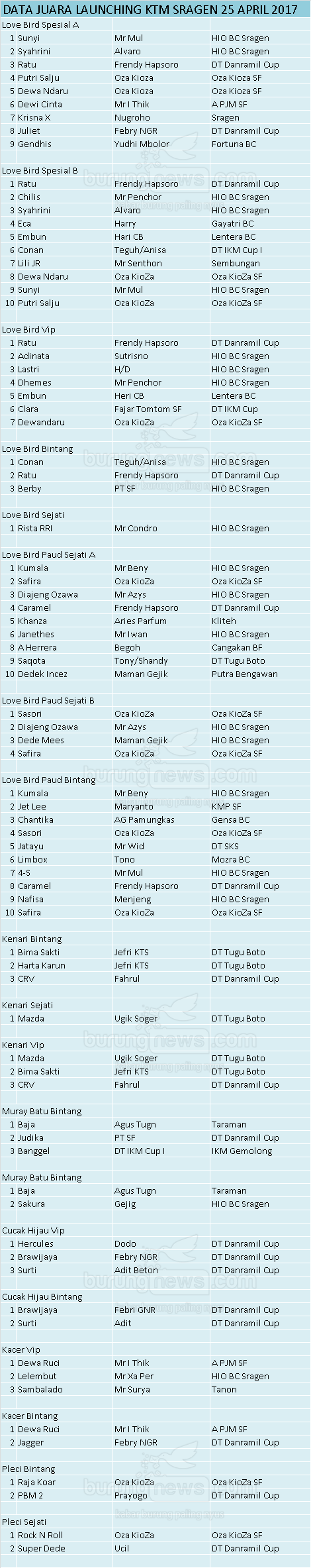 Hasil Lomba Burung