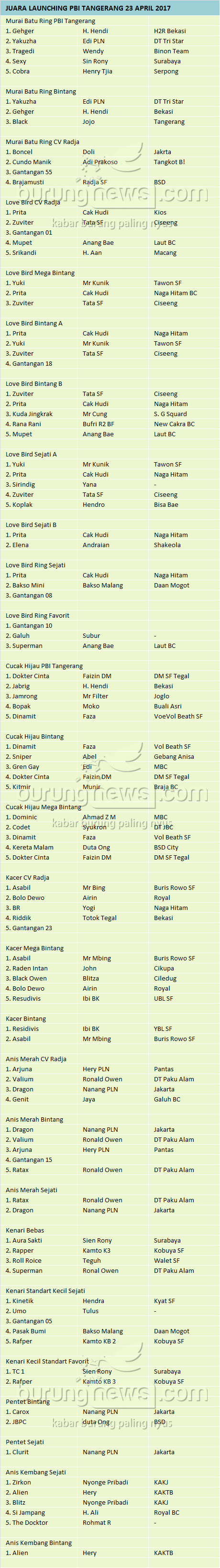 Hasil Lomba Burung