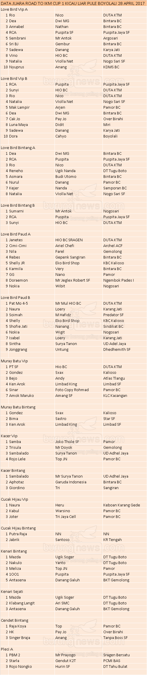 Judul : JUARA ROAD TO IKM CUP 1 KICAU LIAR PULE BOYOLALI, 28 APRIL 2017