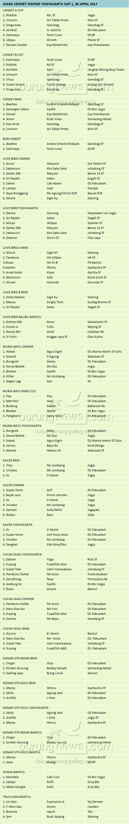 H-1 JELANG GRAND LAUNCHING JOGJA BIRD ARENA: Data Nama Peserta, Waspada Brosur Palsu Masih Gentayangan