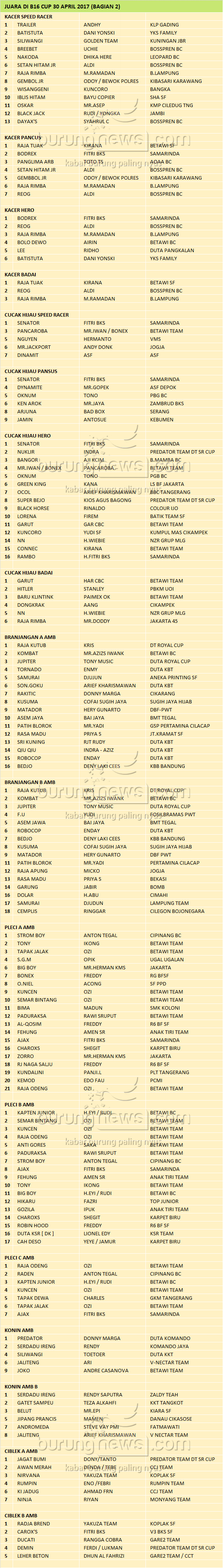 Judul : JUARA DI B16 CUP, 30 APRIL 2017 (BAGIAN 2)