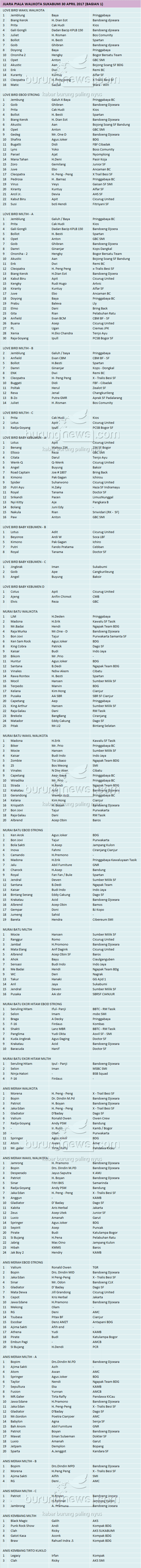 Judul : JUARA PIALA WALIKOTA SUKABUMI, 30 APRIL 2017 (BAGIAN 1)