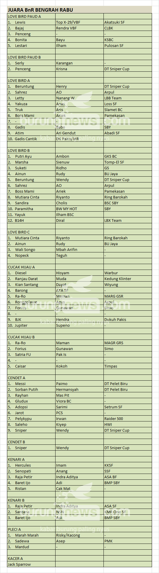 Hasil Lomba Burung