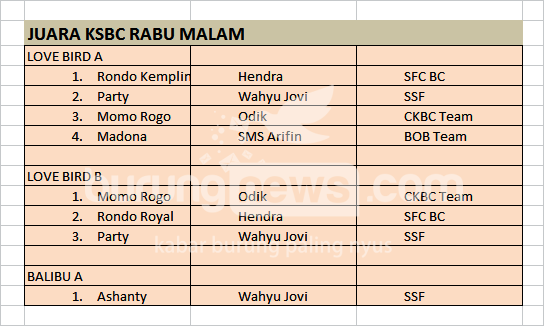 Judul : JUARA KSBC RABU MALAM, 03 MEI 2017