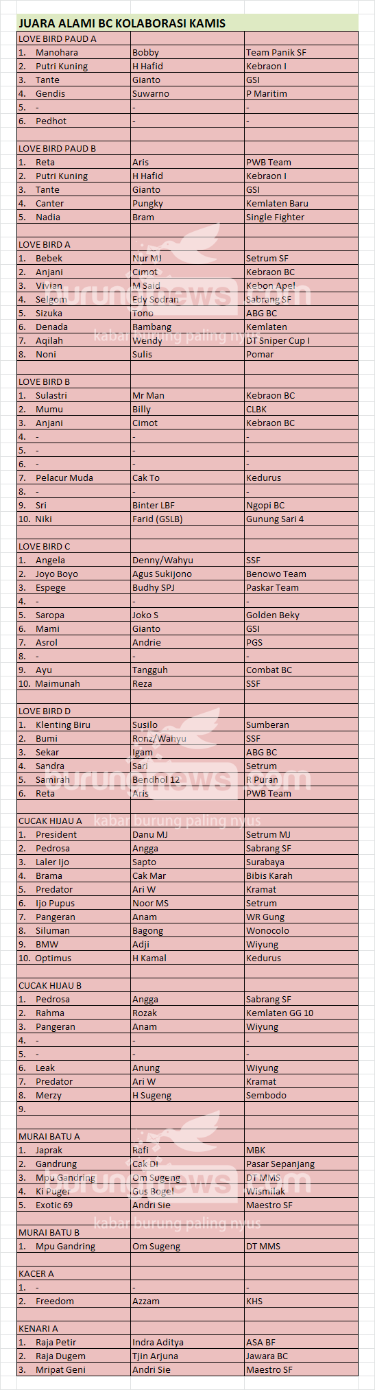 Hasil Lomba Burung
