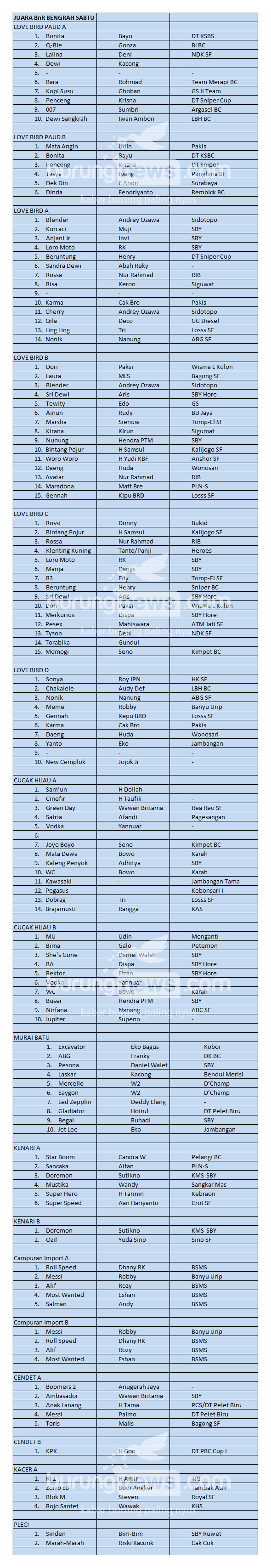 Hasil Lomba Burung