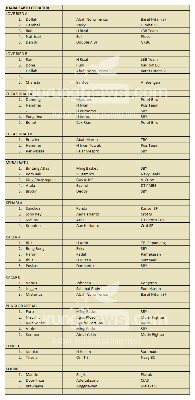 DENANYAR BC + DATA JUARA: MB Anak Emas dan Jibrut Berbagi Podium