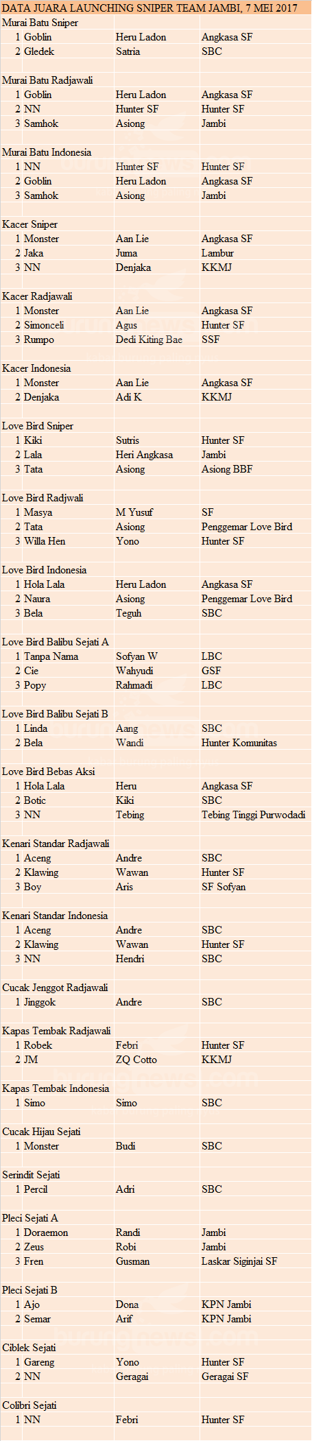 Hasil Lomba Burung