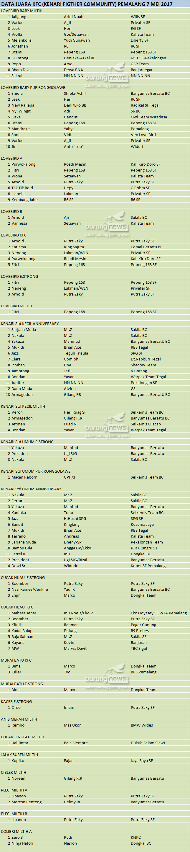 Hasil Lomba Burung