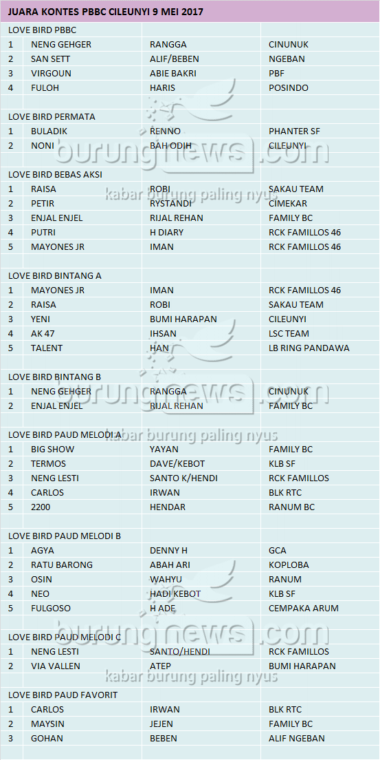 Judul : JUARA KONTES PBBC CILEUNYI, 9 MEI 2017