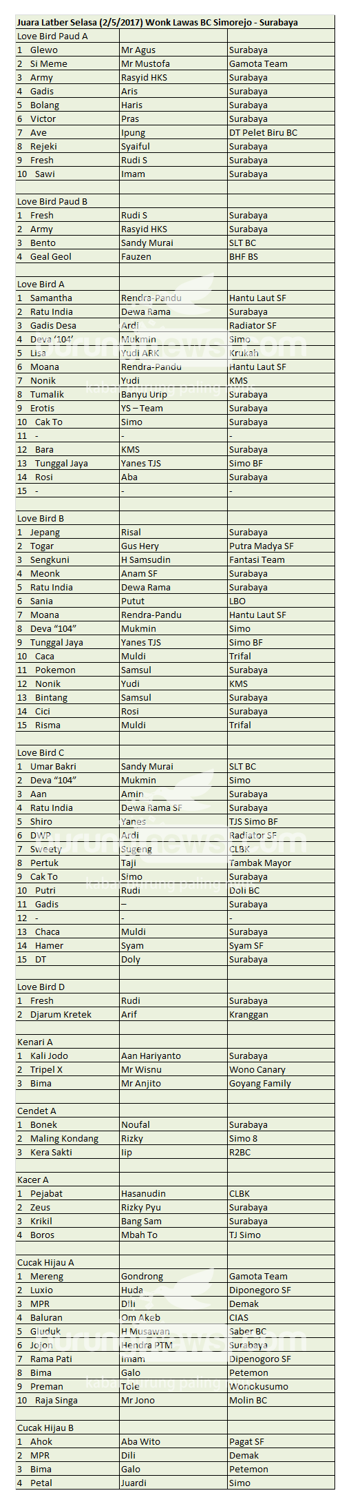 Hasil Lomba Burung