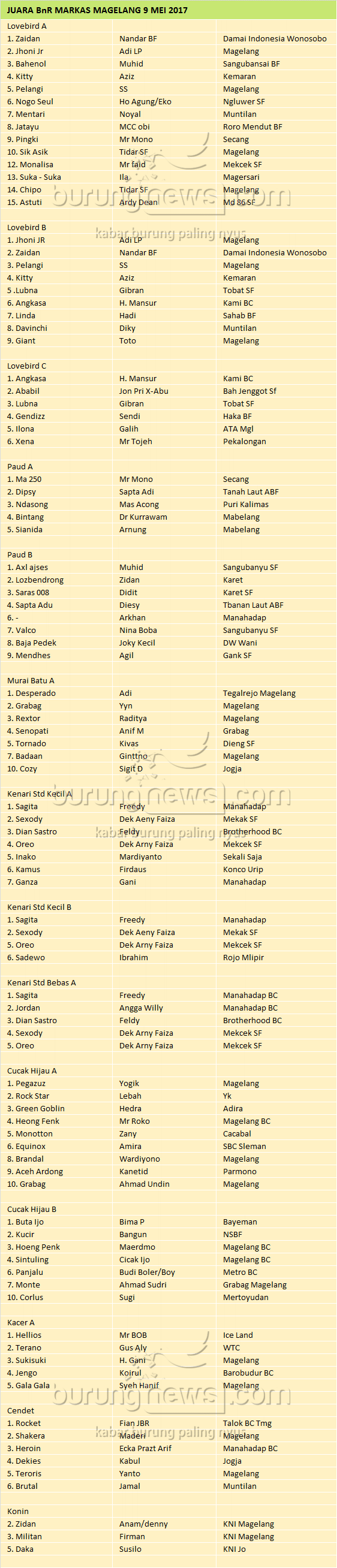 Hasil Lomba Burung