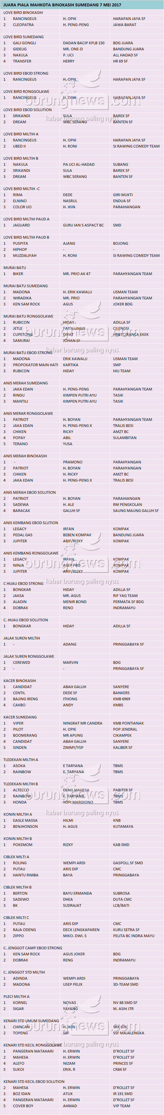 Judul : JUARA PIALA MAHKOTA BINOKASIH SUMEDANG, 7 MEI 2017