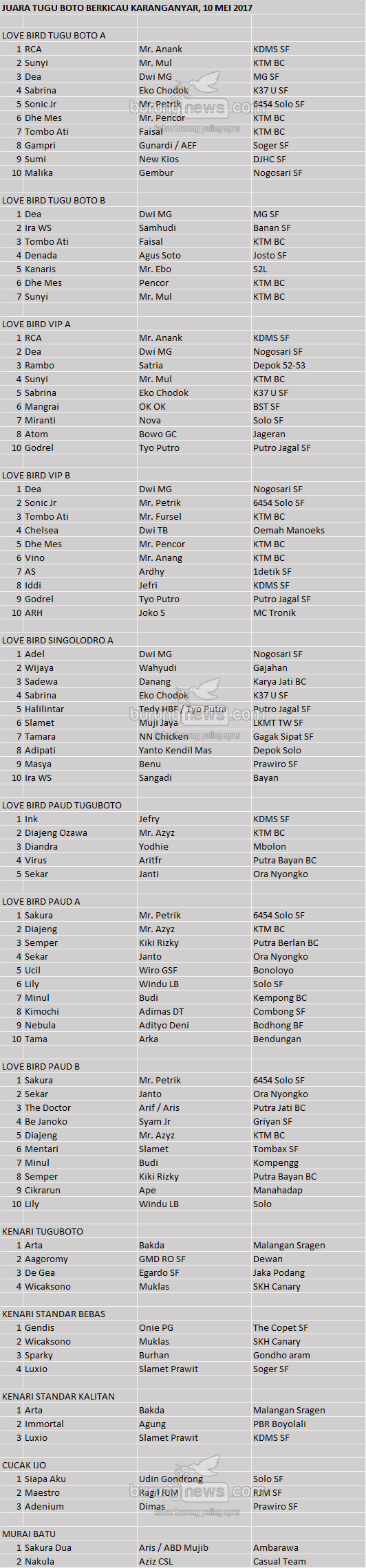 Hasil Lomba Burung