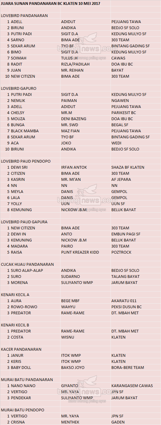 Judul : JUARA SUNAN PANDANARAN BC KLATEN 10 MEI 2017