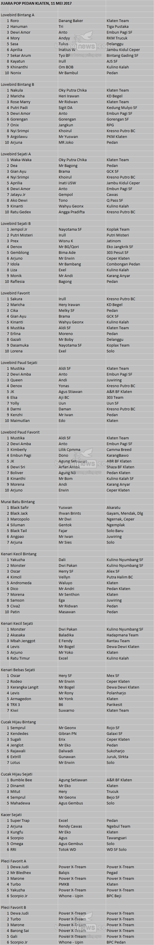 Hasil Lomba Burung