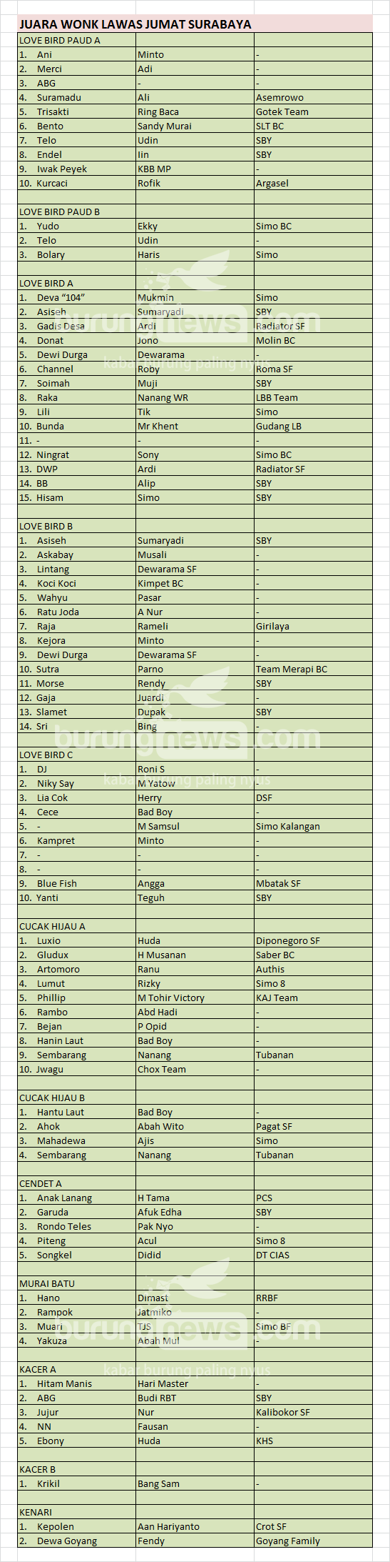 Judul : JUARA WONK LAWAS BC JUMAT SURABAYA, 12 Mei 2017