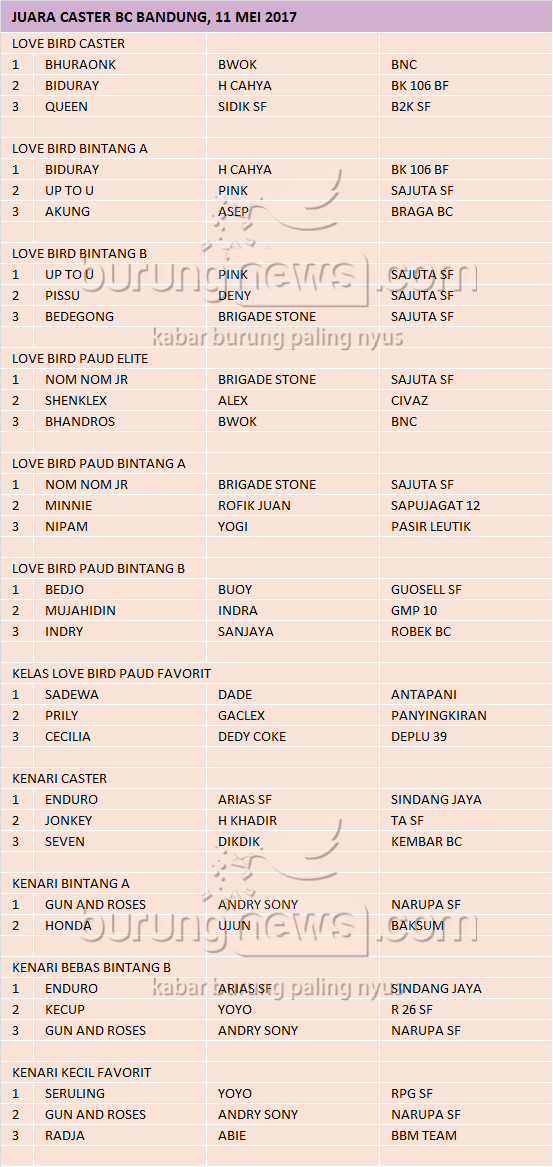 Judul : JUARA CASTER BC BANDUNG, 11 MEI 2017