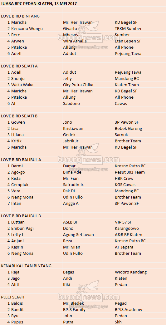 Judul : JUARA BPC KLATEN 13 MEI 2017