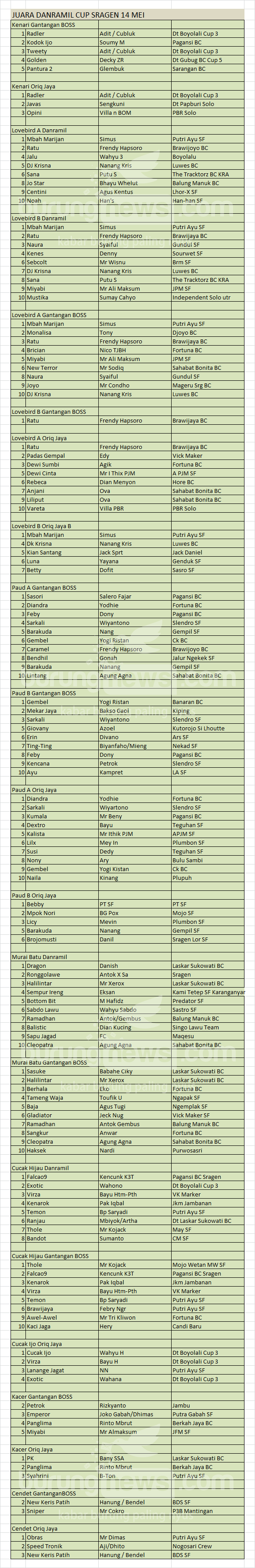 Hasil Lomba Burung
