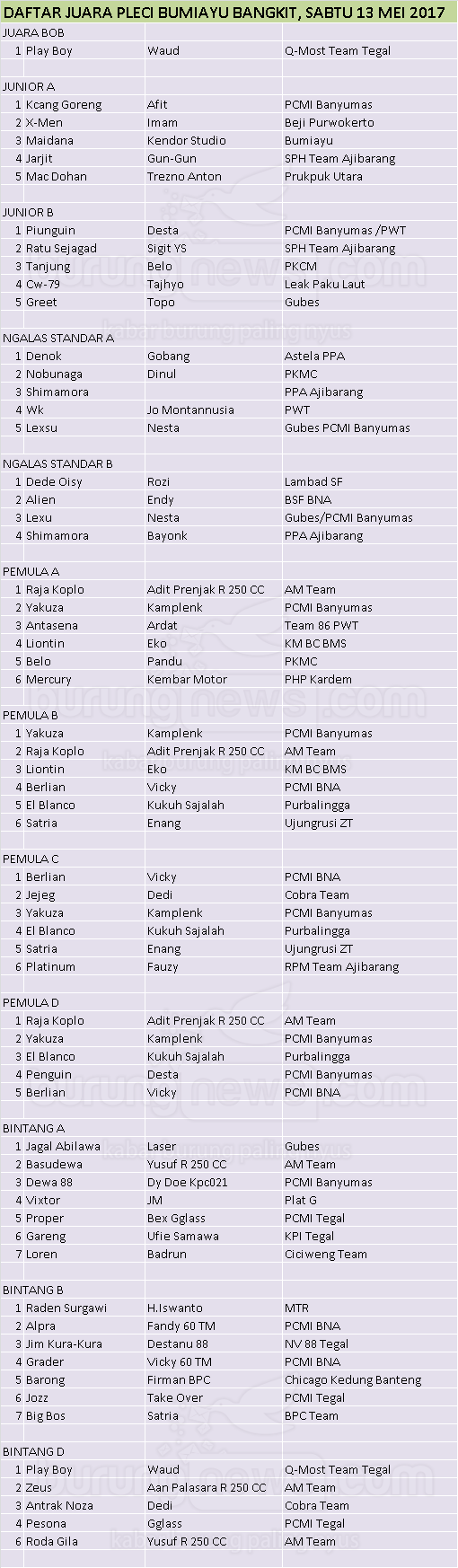 Hasil Lomba Burung