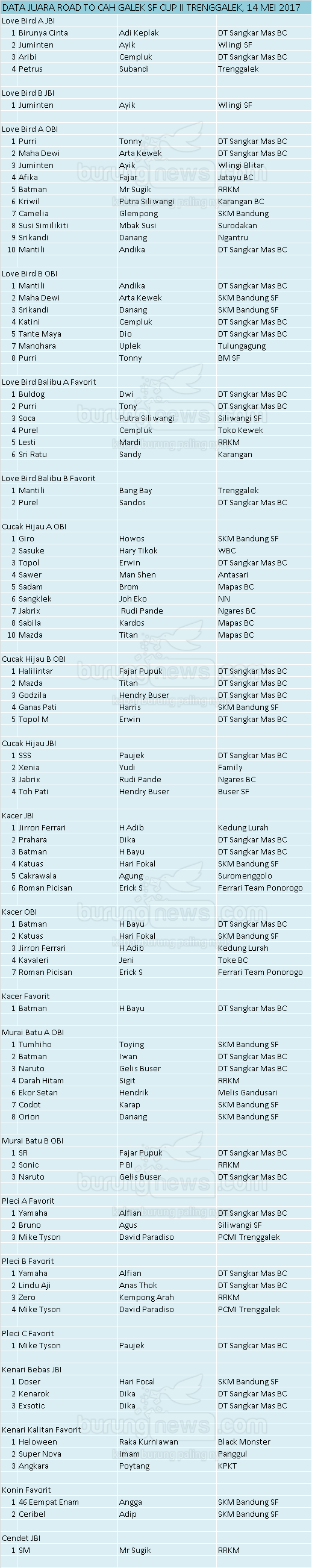 Hasil Lomba Burung