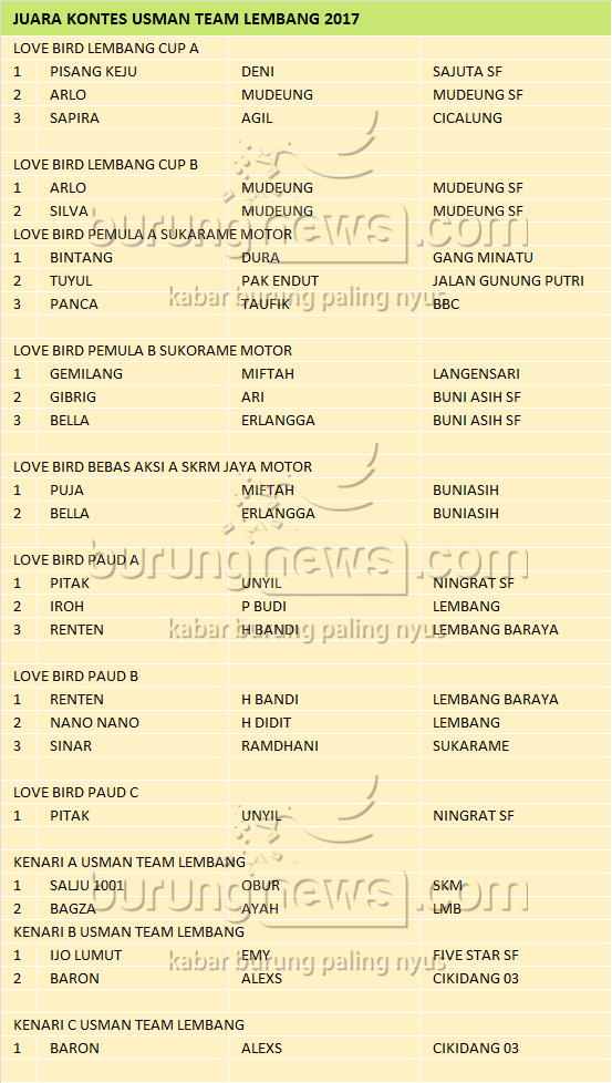 Judul : JUARA KONTES USMAN TEAM LEMBANG, 19 MEI 2017