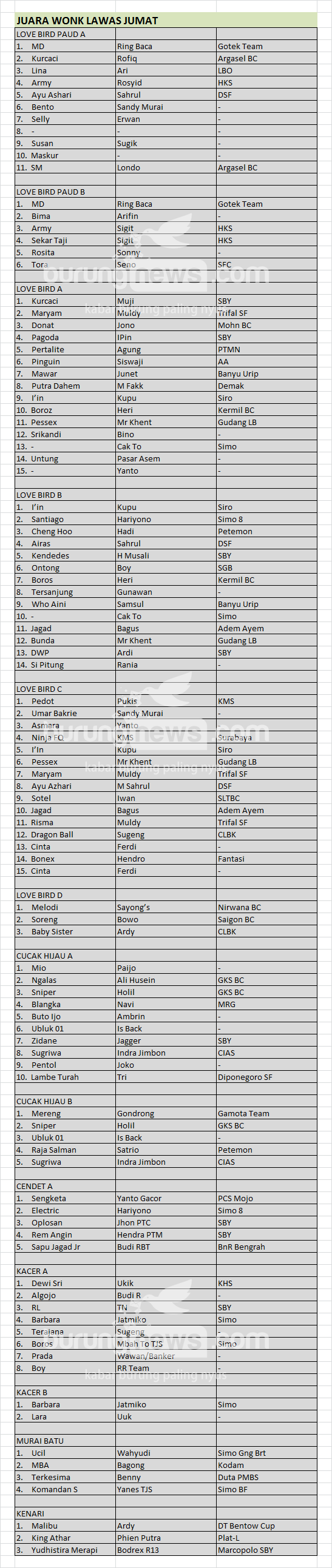 Judul : JUARA WONK LAWAS BC JUMAT, 19 Mei 2017