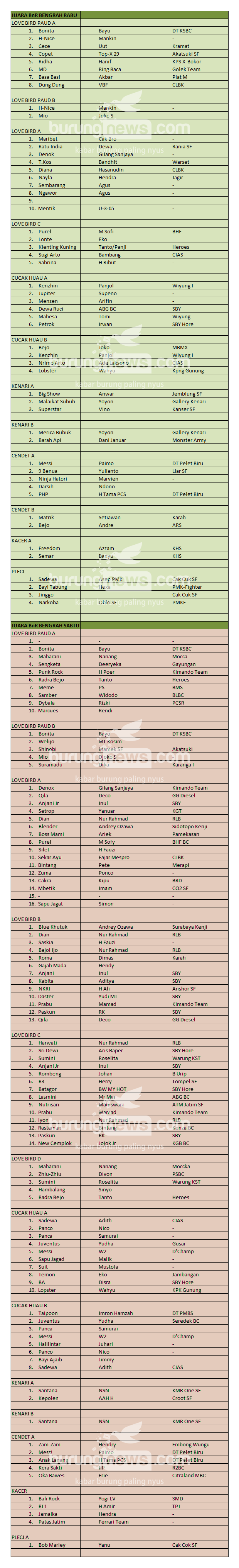 Hasil Lomba Burung