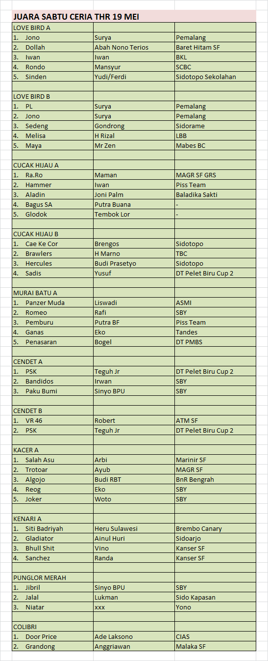 Hasil Lomba Burung