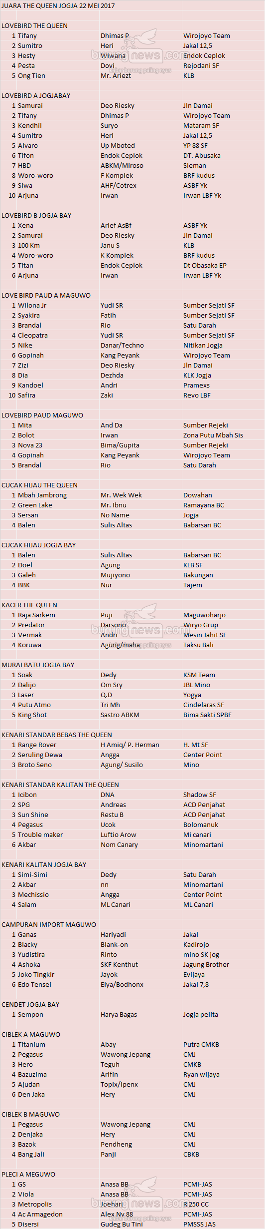 Hasil Lomba Burung