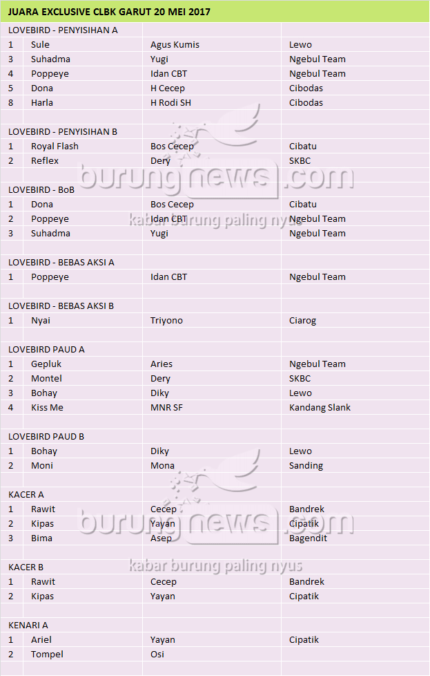 Judul : JUARA EXCLUSIVE CLBK GARUT, 20 MEI 2017