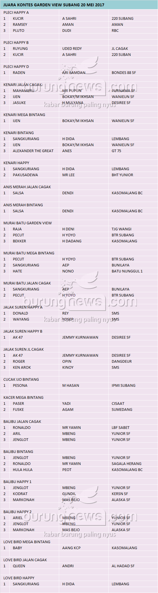 Judul : JUARA KONTES GARDEN VIEW SUBANG, 20 MEI 2017
