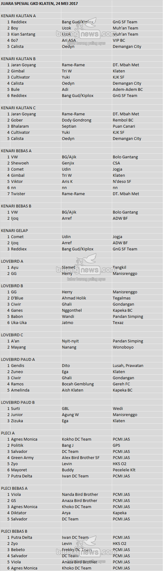 Hasil Lomba Burung