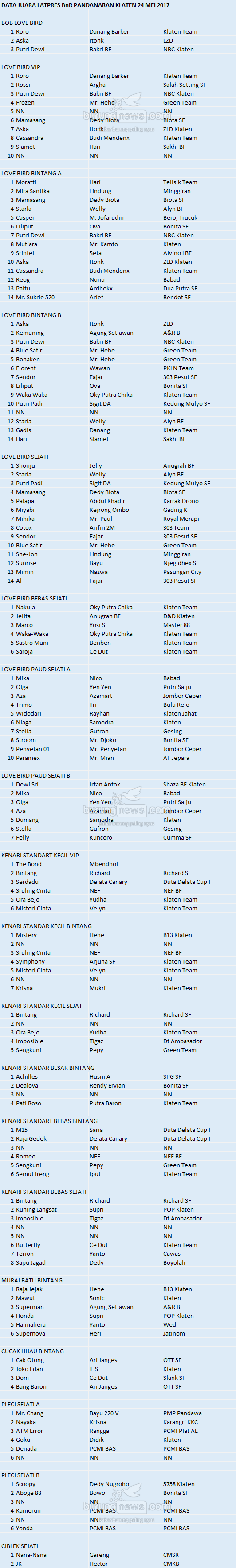 Judul : JUARA BNR PANDANARAN KLATEN 24 MEI 2017