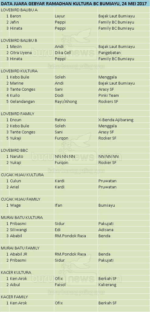 Hasil Lomba Burung