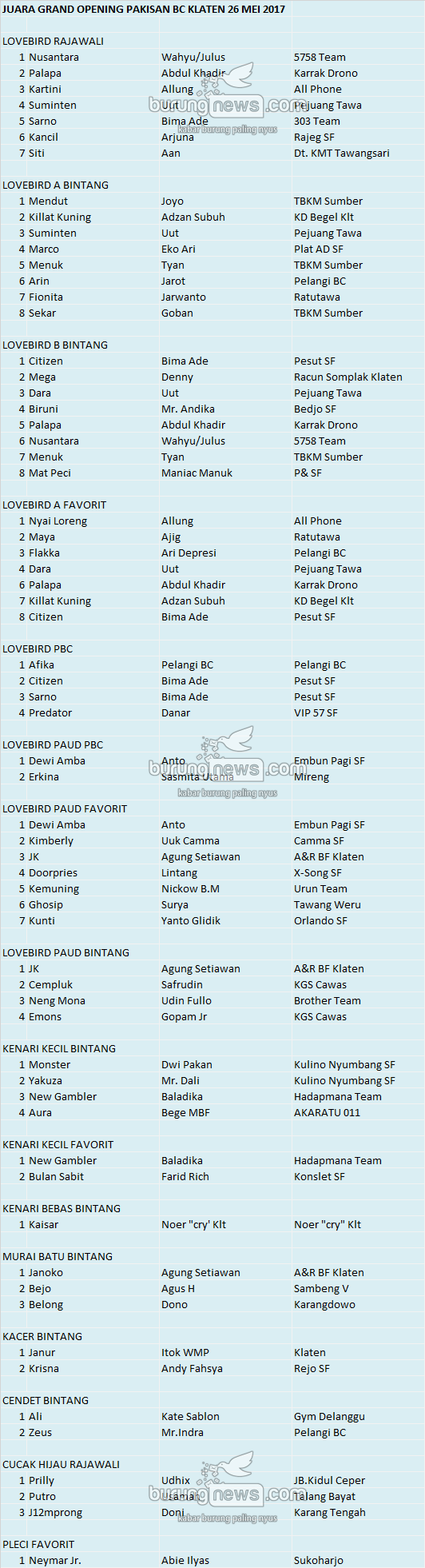 Judul : JUARA GRAND OPENING PAKISAN BC KLATEN 26 MEI 2017