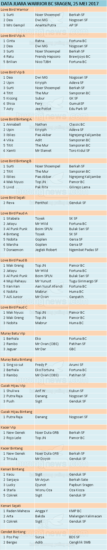 Judul : JUARA WARRIOR BC SRAGEN, 25 MEI 2017