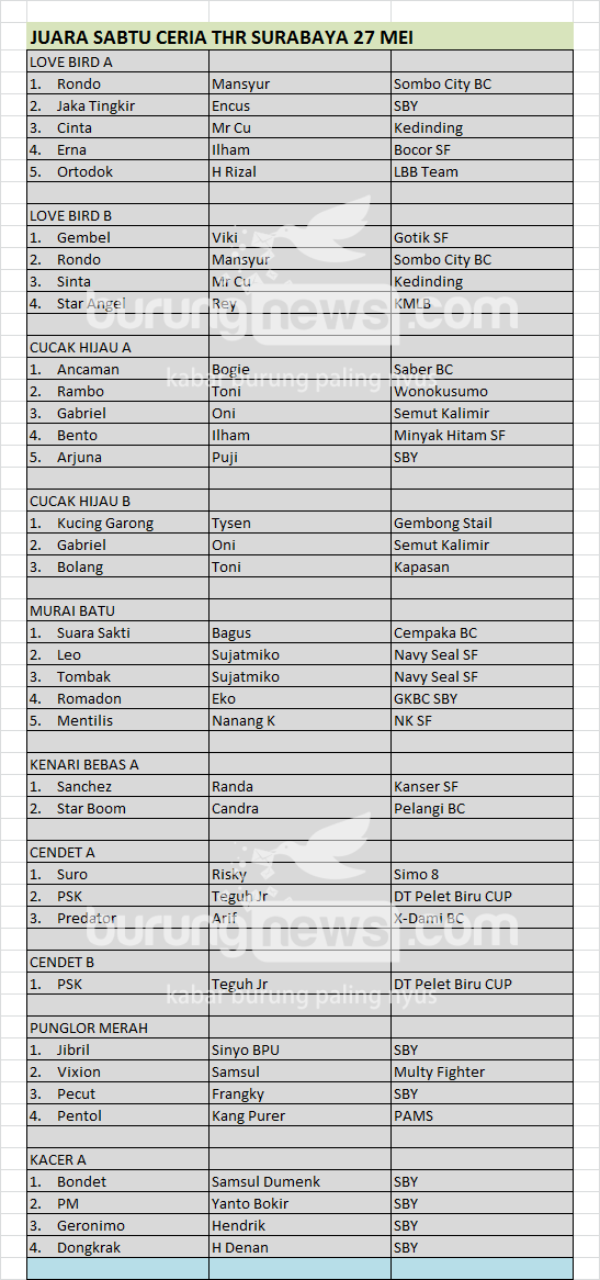 DATA JUARA MAHARAJA BENGRAH - SURABAYA (MINGGU, 29 MARET 2026)