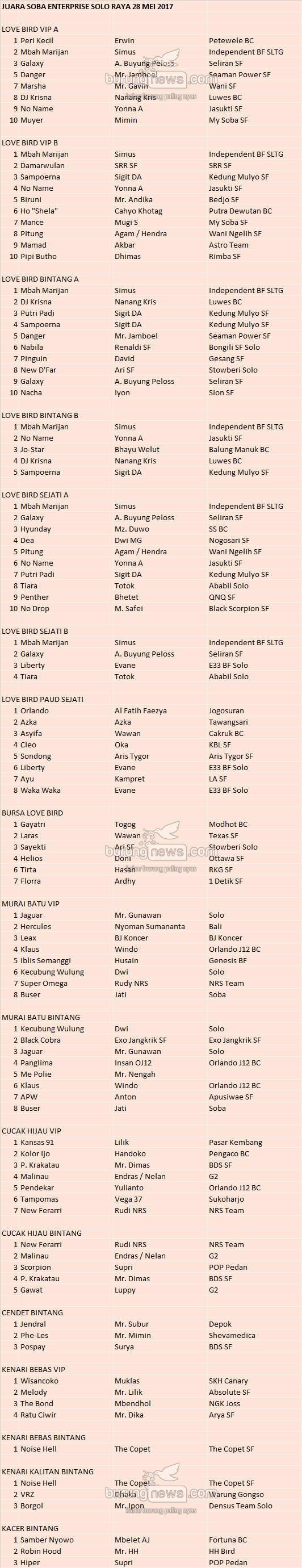 Hasil Lomba Burung