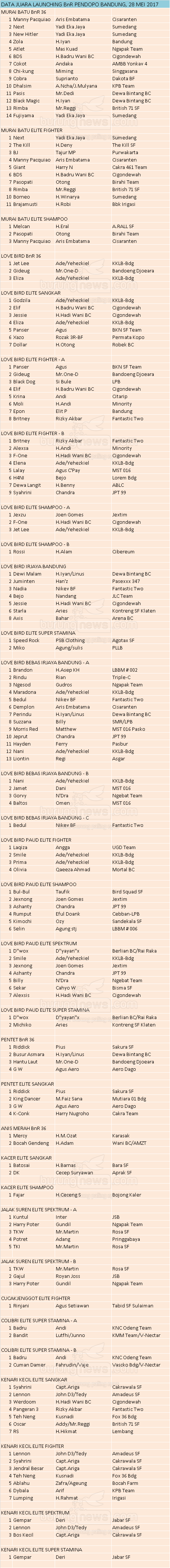Hasil Lomba Burung