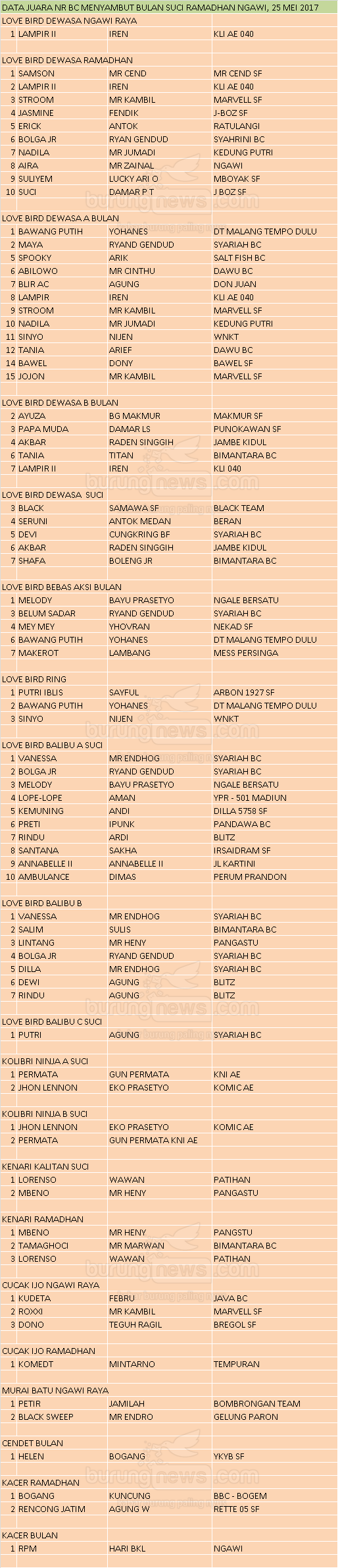 Hasil Lomba Burung